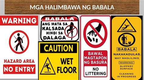 Narito ang ilang halimbawa ng mga larawan ng babala: